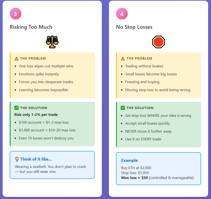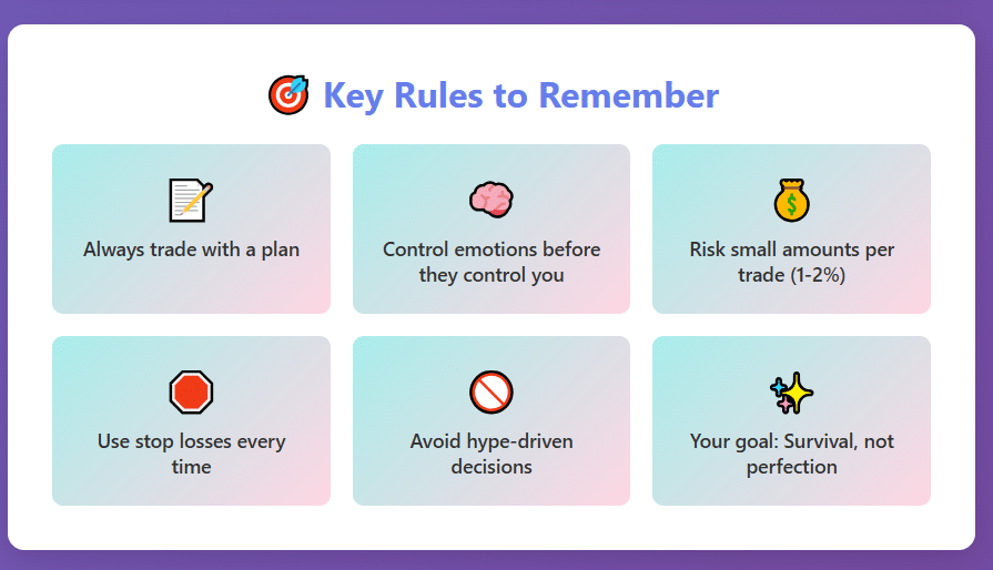 Risk management is not about avoiding losses. It’s about making sure no single trade can seriously hurt you. Beginners often think: “This setup looks good, I’ll go bigger.”