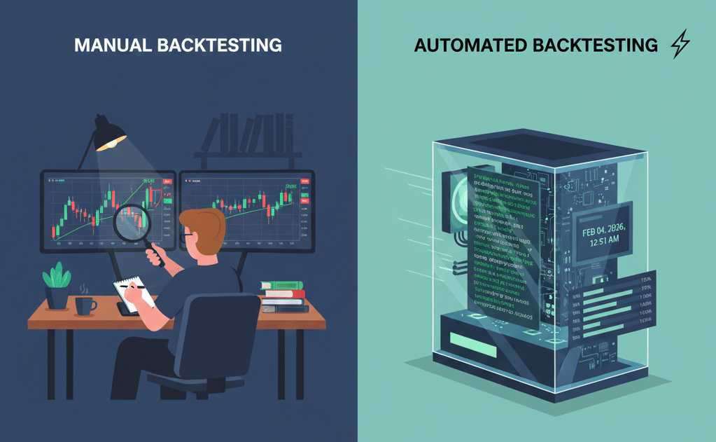 Manual backtesting is slower, but it has a huge advantage: you actually learn the market. By going through charts trade-by-trade, you start recognizing patterns and understanding how price moves. Many professional traders swear by manual testing for this reason.