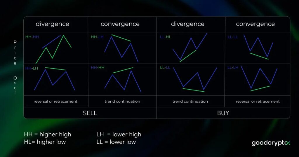 - RSI divergence signals fading momentum before price has confirmed the reversal